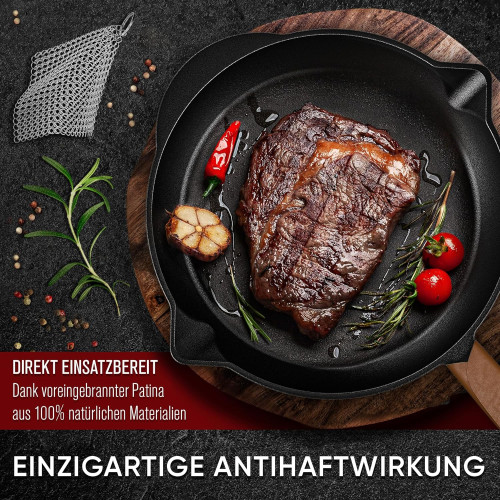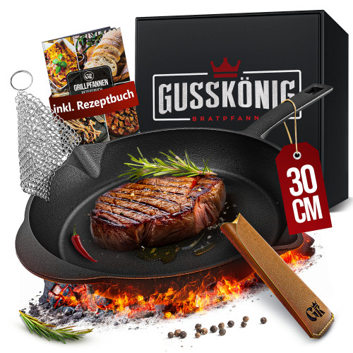 Чавунна пательня Gusskönig 30 см + книга рецептів, очищувач, шкіряна накладка